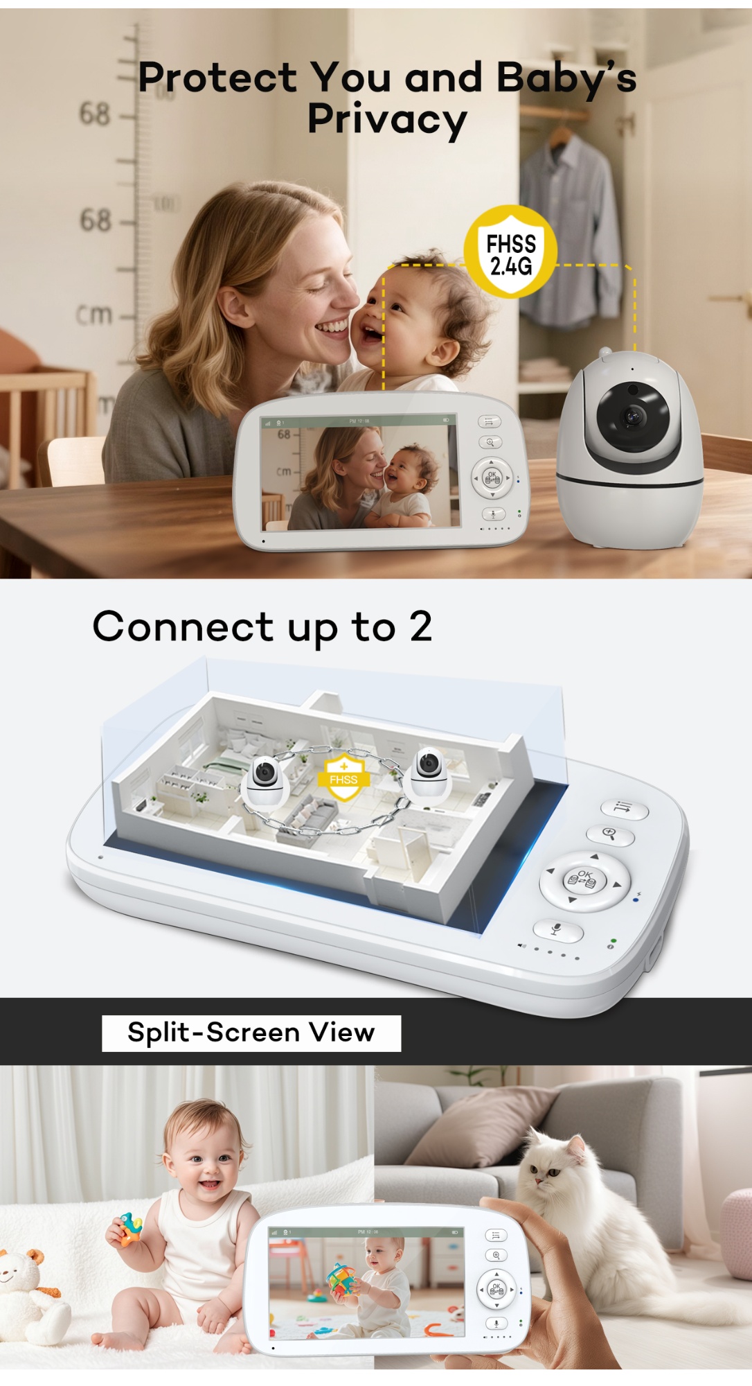 Gain ultimate "Peace of Mind" with our advanced 5-inch 720p Video Baby Monitor, designed to keep an eye on your little one. The 720p resolution ensures you see every detail, day or night, on a generously sized screen.
