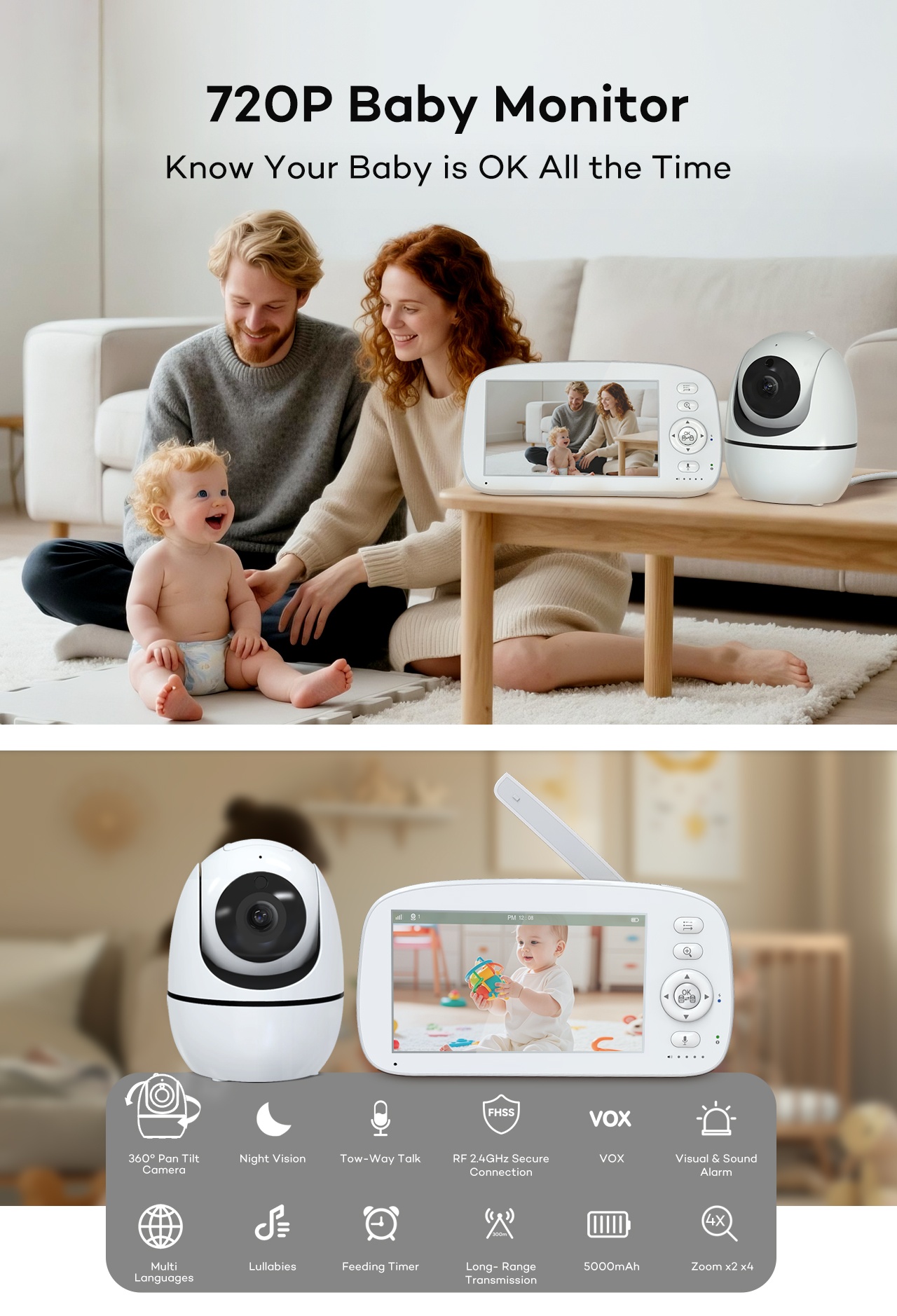 For parents prioritizing simplicity, reliability, and value, our 5Inch 720P Baby Monitor delivers essentials—no extra complexity—at a competitive price.