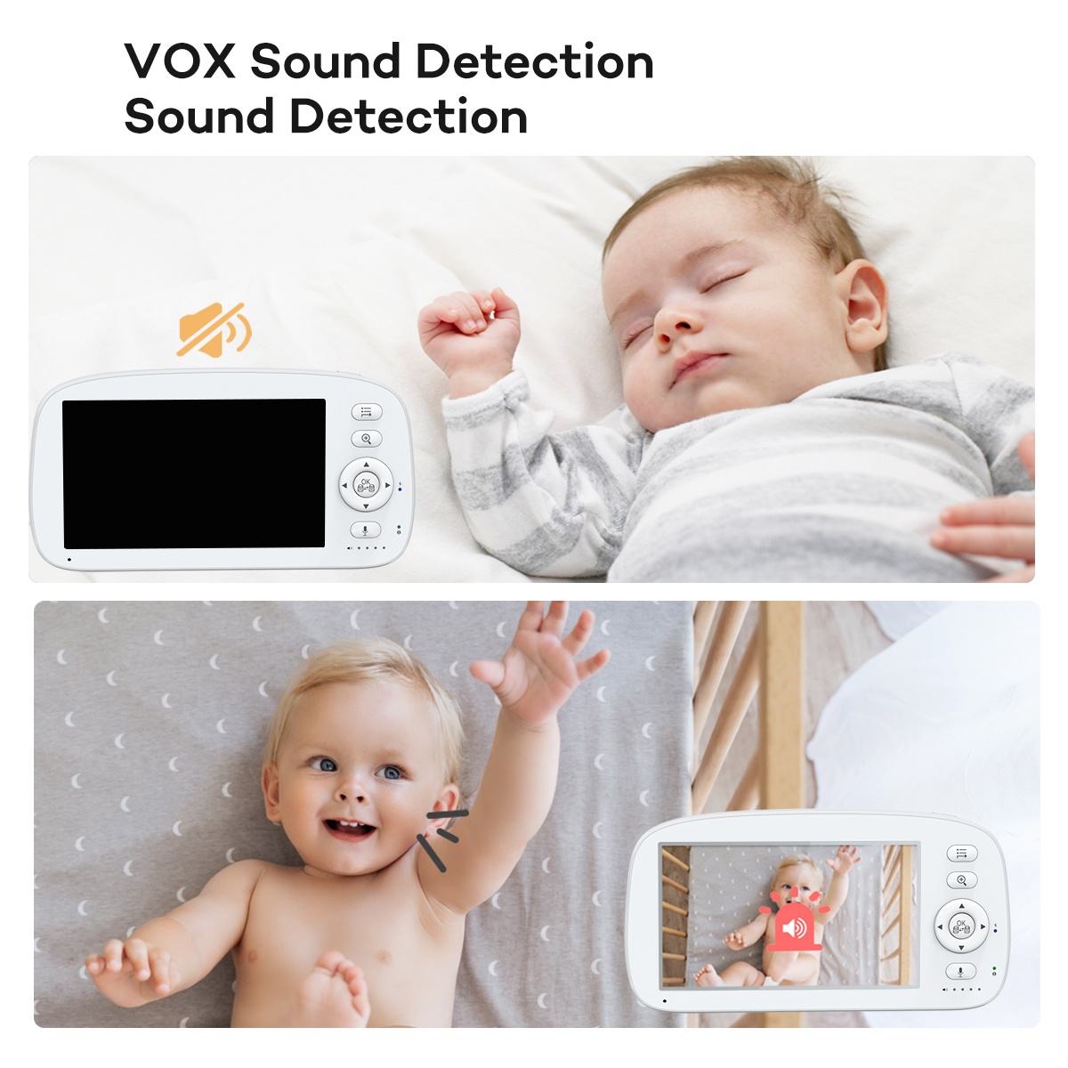 - VOX & Sound Detection: Autoactivates screen at baby’s sounds (coos, cries), saving battery while you don’t miss a peep.