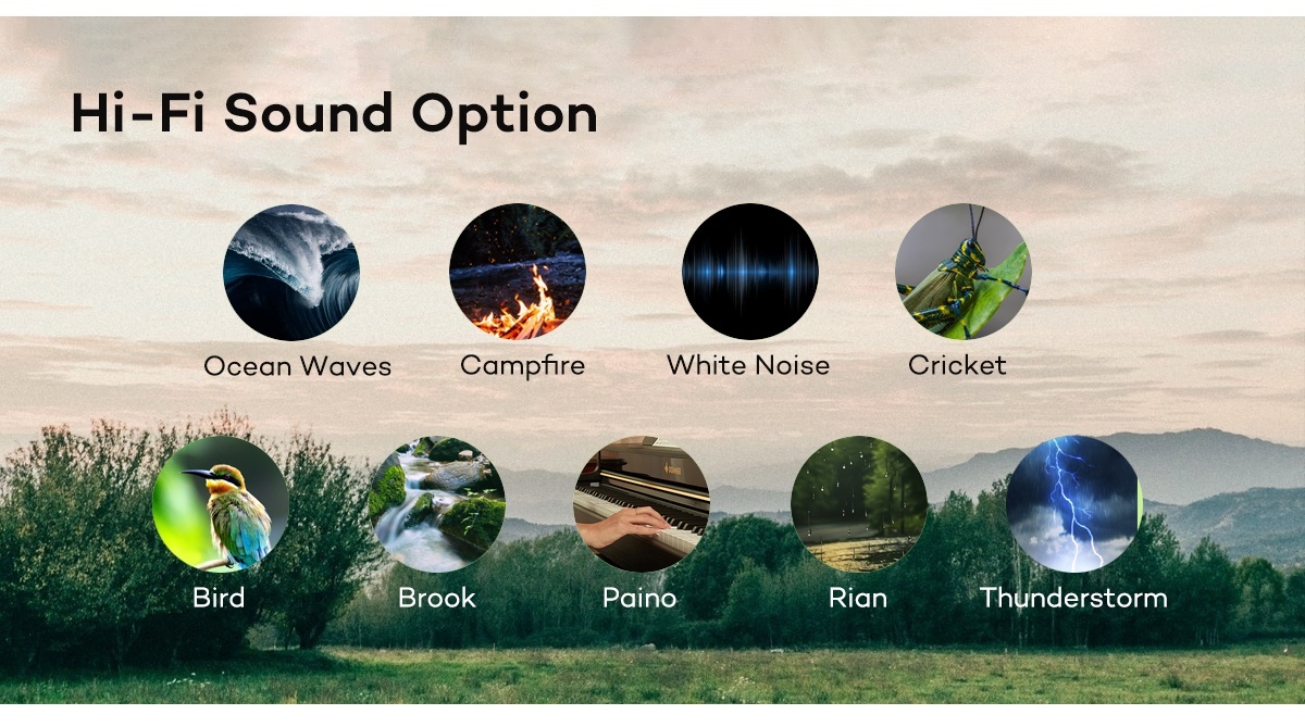 • 20 soothing sounds: Includes soft lullabies, pure white noise (muffles distractions), serene nature sounds (gentle rain, rustling leaves, ocean waves), and a tender heartbeat that evokes womb-like safety—perfect for every mood.